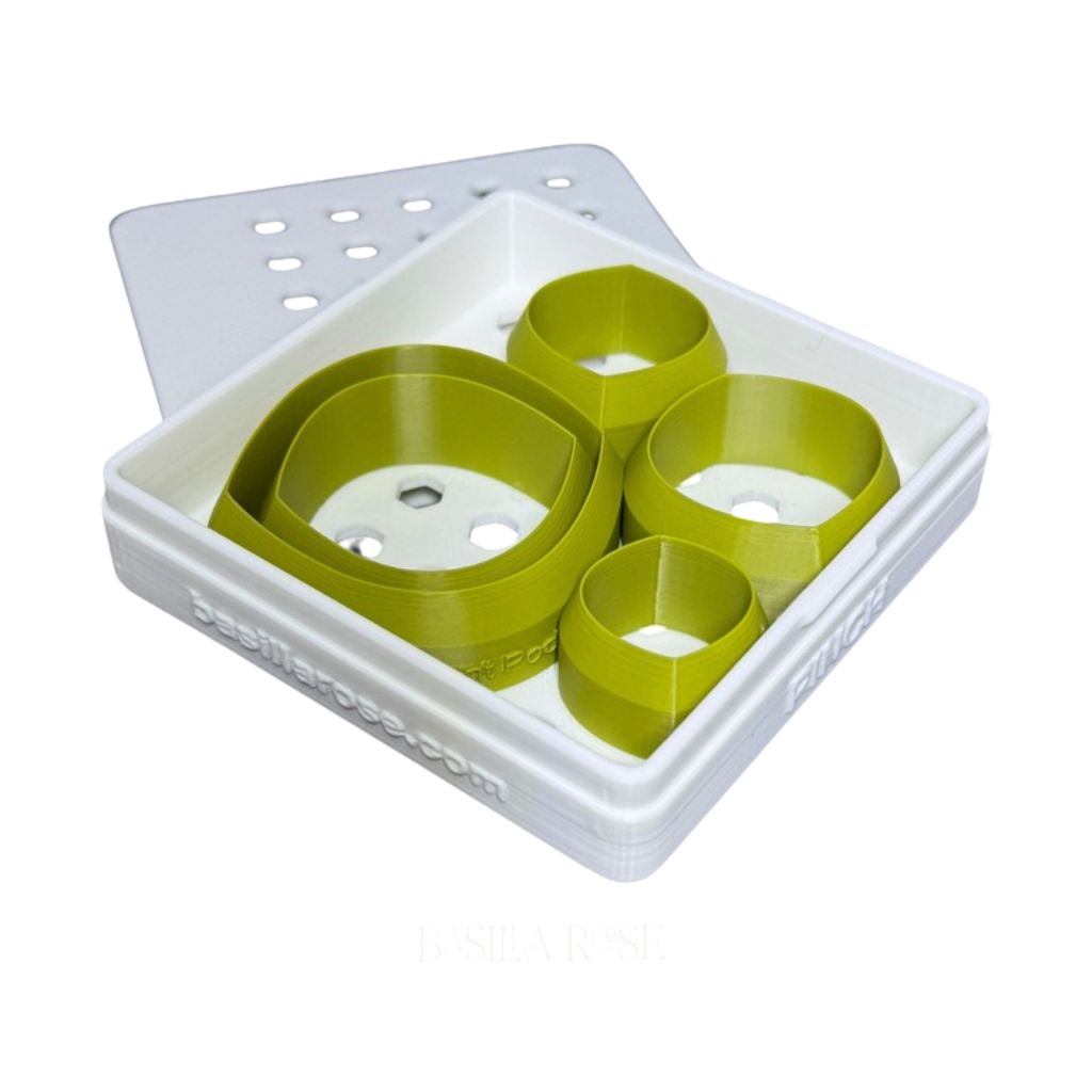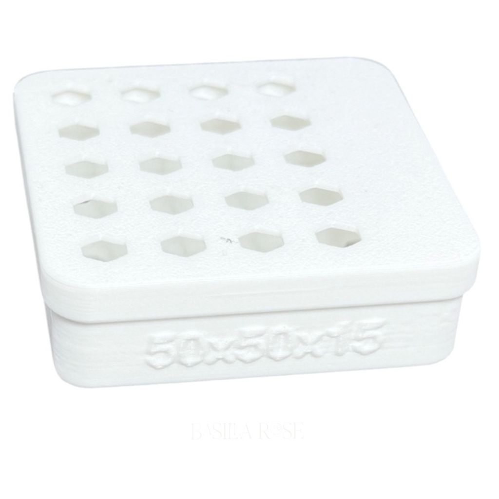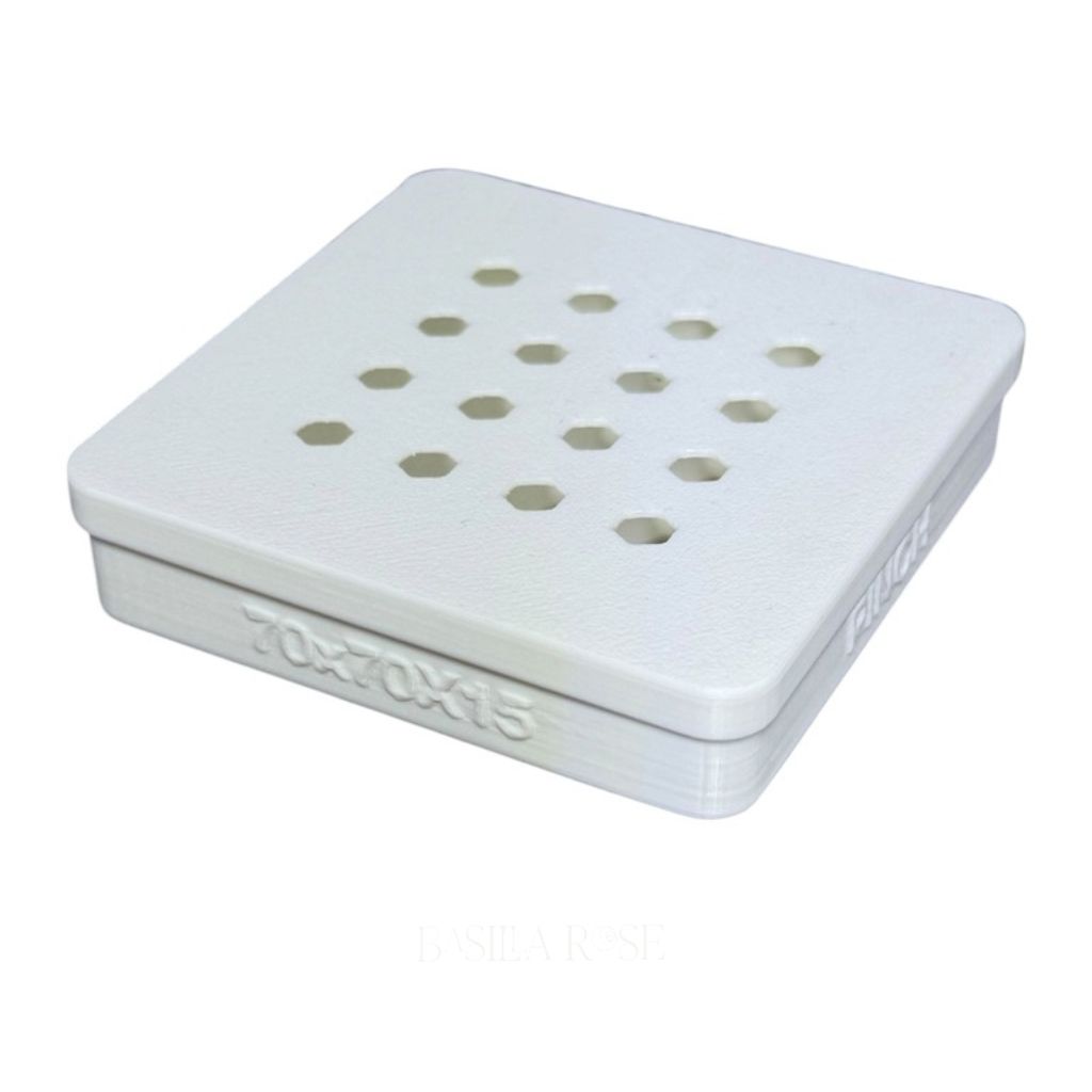 This slim-profile container is ideal for stacked cutter sets or frequently used shapes. The snap-fit lid closes firmly with a satisfying press, keeping cutters safely enclosed without shifting or accidental opening. Its ventilated hex pattern allows airflow to help prevent moisture buildup while maintaining the structural integrity of the box.