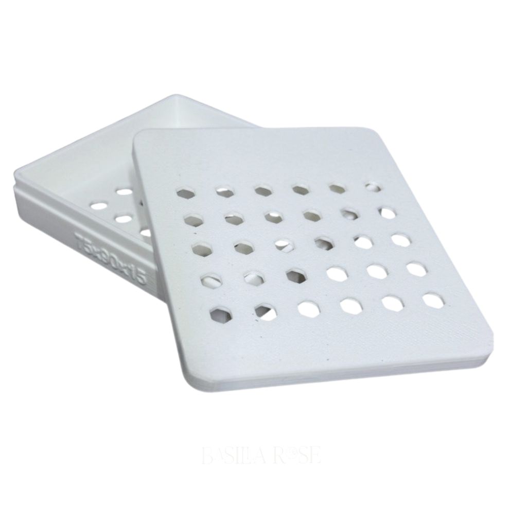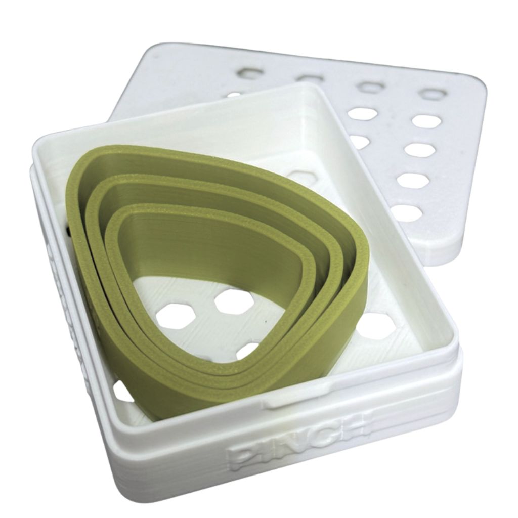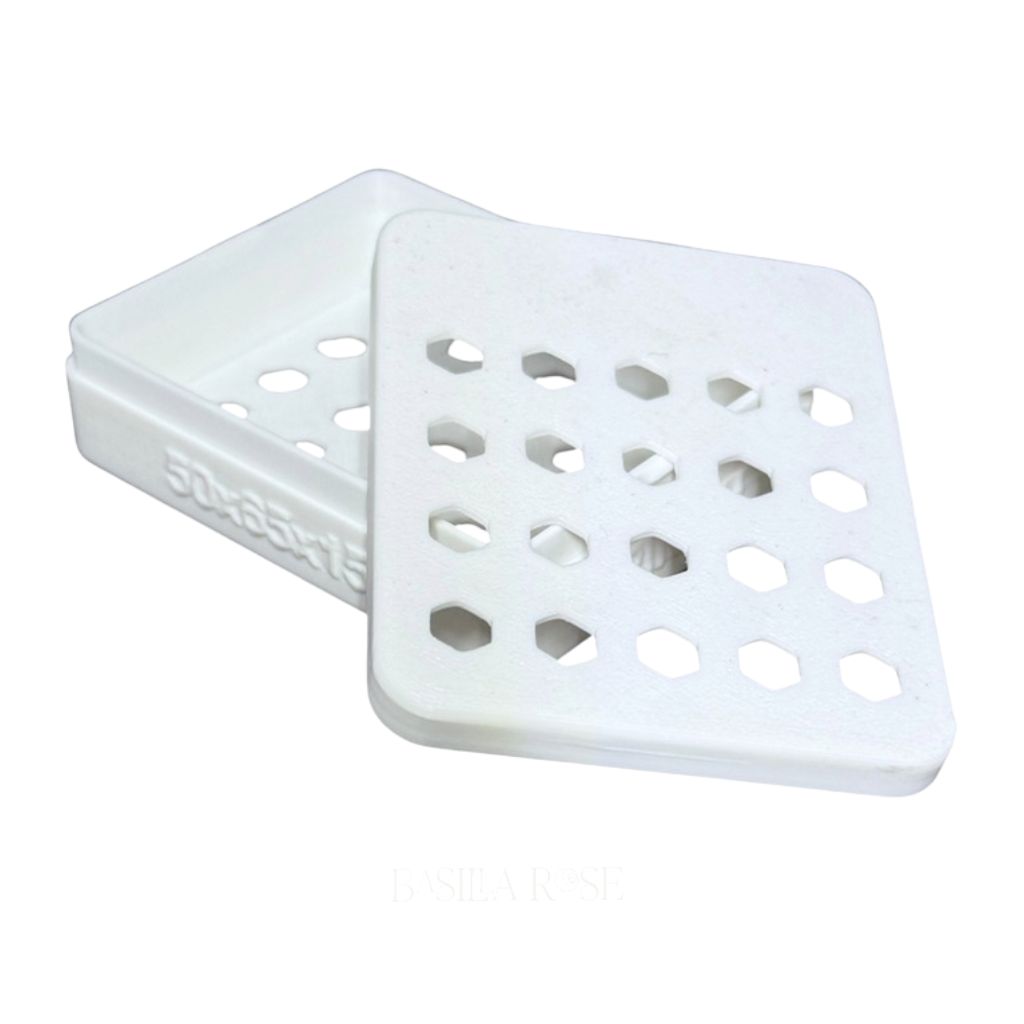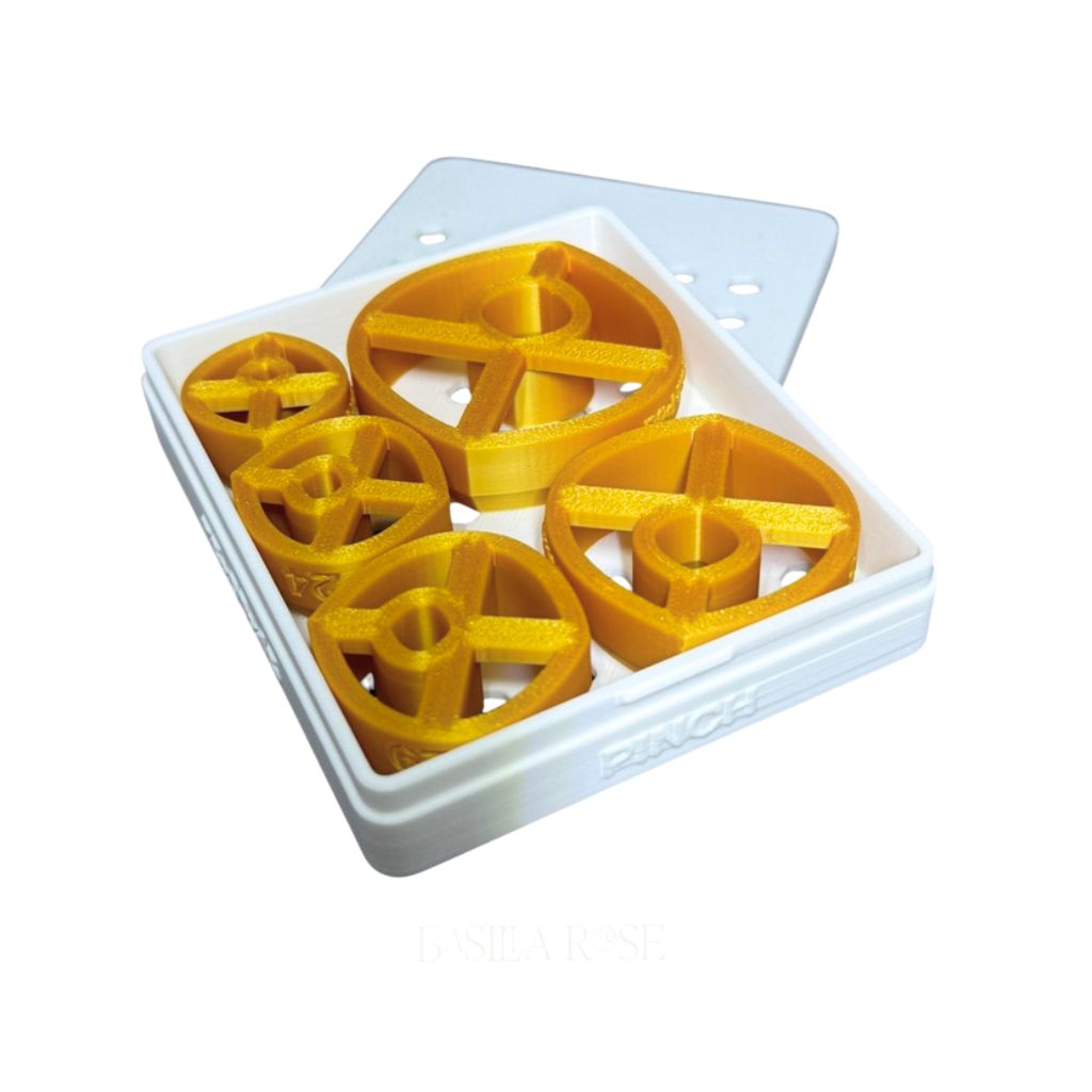 This slim-profile container is ideal for stacked cutter sets or frequently used shapes. The snap-fit lid closes firmly with a satisfying press, keeping cutters safely enclosed without shifting or accidental opening. Its ventilated hex pattern allows airflow to help prevent moisture buildup while maintaining the structural integrity of the box.